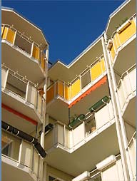 Beispiel 3: Eckbalkone mit Betondach, Stahl-Rahmen mit Betonplatte (Berlin)