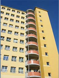 Beispiel 4: Balkone mit Stahl- und Betonstützen mit Stahlbetondecke, runde Form (Magdeburg)